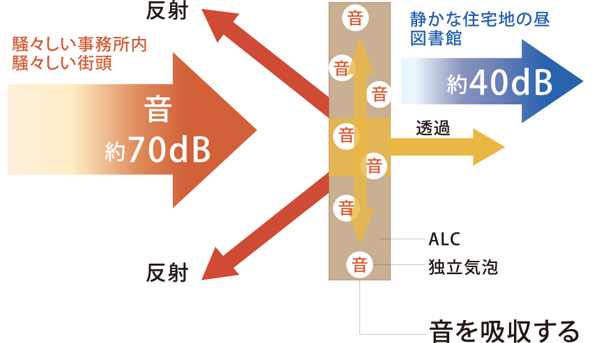 ALC外壁材は火や熱を遮断するだけでなく、音も通しにくい外壁材です。室内の音が外に伝わりにくく道路を走る車の音など生活騒音も遮断遮音性に優れているため、やすらぎのある住み心地のよい住まいを可能にします。遮音性に優れたALC外壁材は、1日の疲れを癒す安眠の時をもたらし、快適生活を実現します。