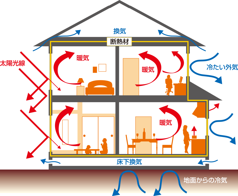夏は日射しにより加熱された壁の中の熱気が排出され、室内の温度上昇が抑えられるので冷房効果が高まります。